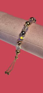 PULSERA EN ORO LAMINADO CON BOLITAS DE CRISTAL